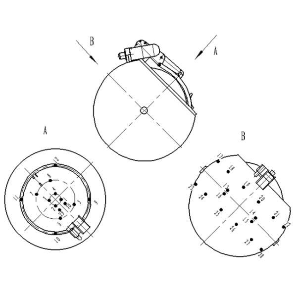 | 1. Insert the manual switch plate into the hexagonal shaft at the back of the explosion-proof ball. 2. Turn the switch wrench in the direction indicated by the sign. 3. Observe the opening and closing of the ball cover through the rearview mirror. Note: 1. When manually switching the ball cover, please disconnect the power supply in the electric cabinet. 2. Dangerous goods should be placed in the center of the ball supporting net. | ![]() |